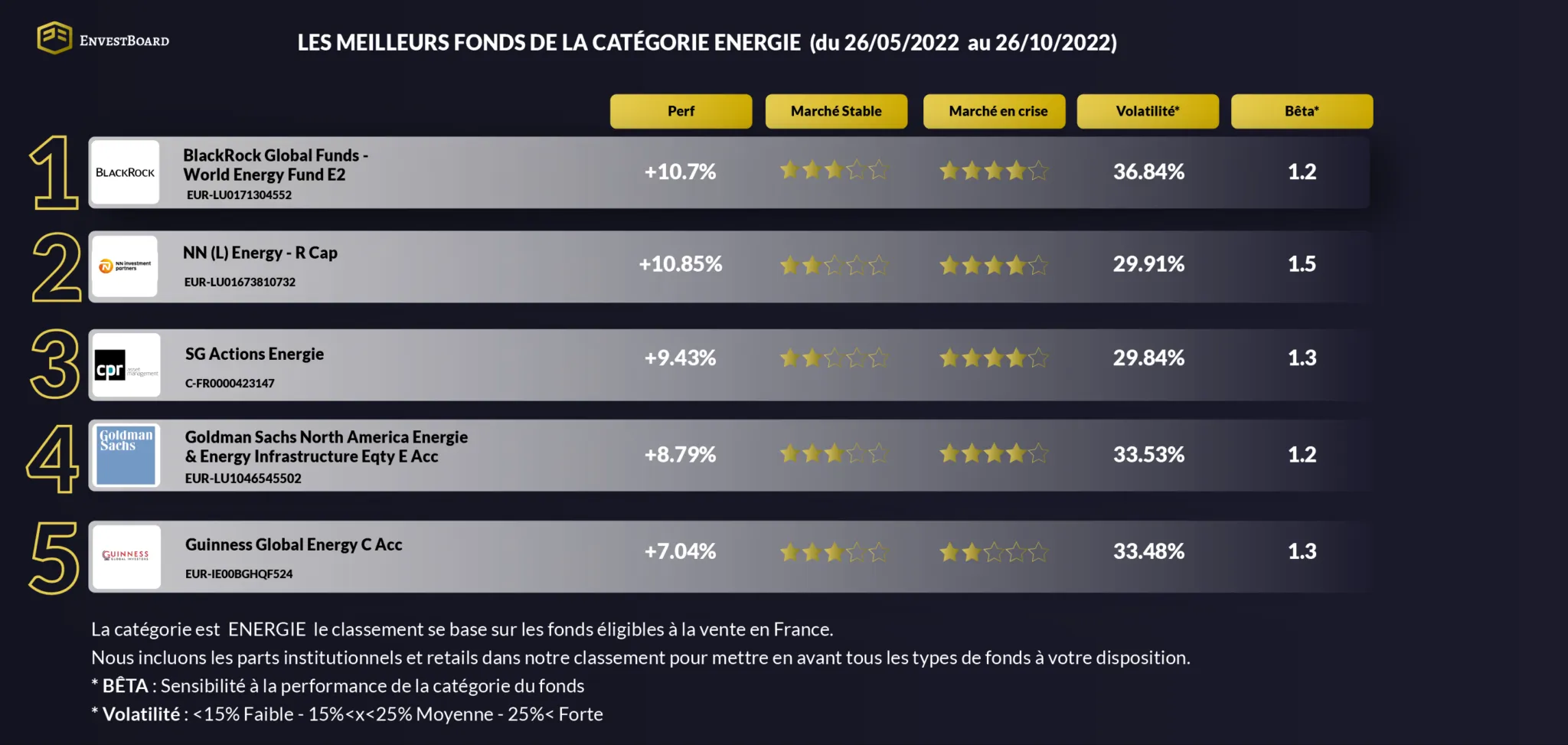 Les meilleurs fonds de la catégorie Energie ( du 26/05/2021 au 26/10/2022)