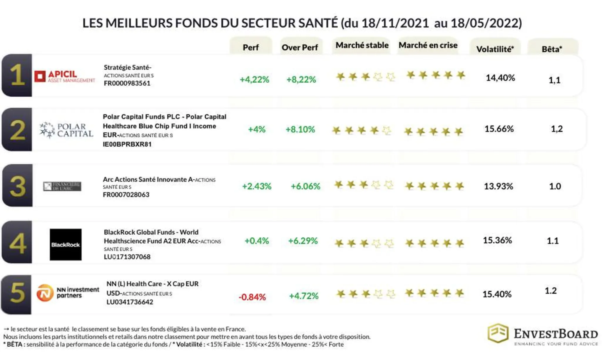 Les meilleurs fonds du secteur Santé (du 18/11/2021 au 18/05/2022)